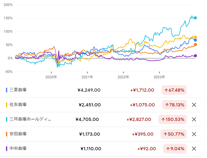 そして気が付くのが中央倉庫の異様な自己資本比率の高さです。ほぼ借金が無くて内部留保貯めまくってるのが分かります。(PBRもいい感じ)
