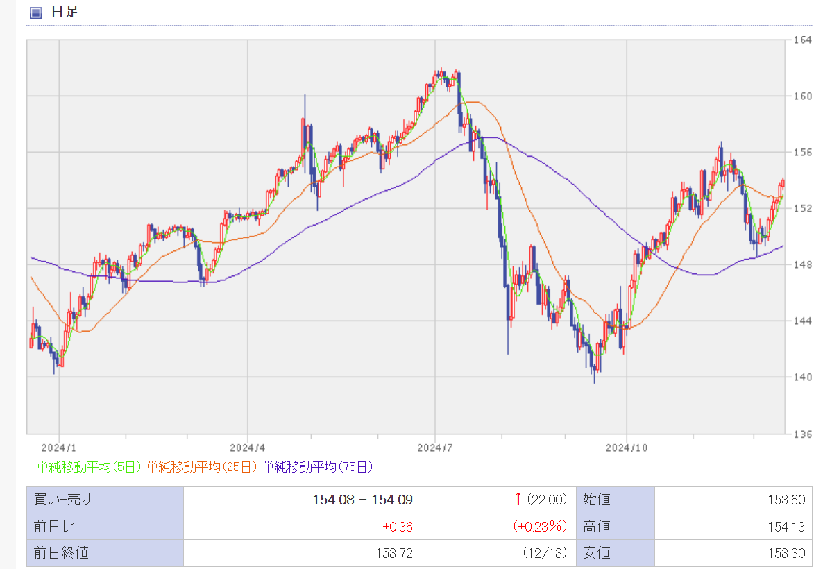 現在¥154円を突破してしまいました。