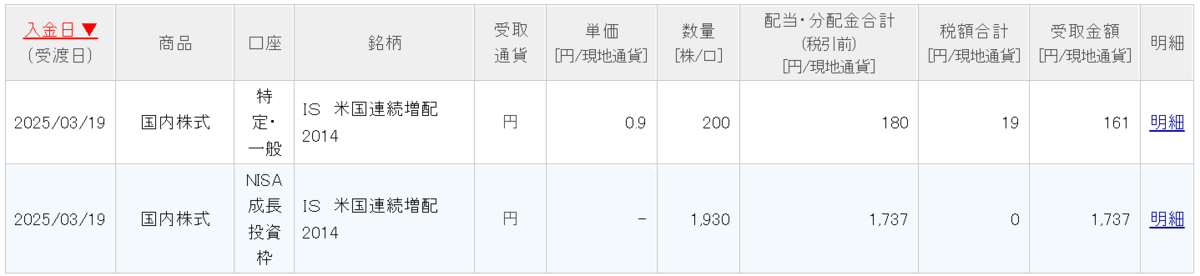 去年からこつこつ買い続けている2014から配当金の入金がありました